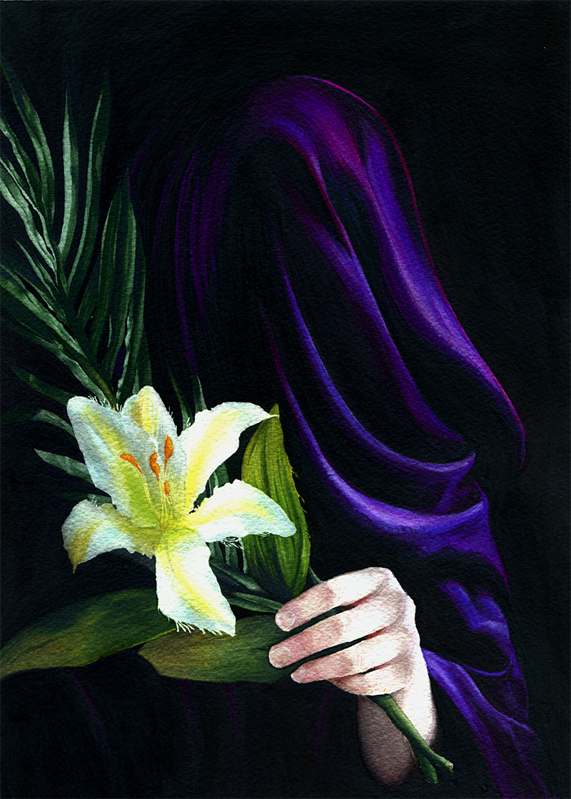 A gouache texture study with a focus on rendering velvet cloth. Inspired by the Catholic tradition of veiling statues in purple cloth on the fifth Sunday of the Lenten season.